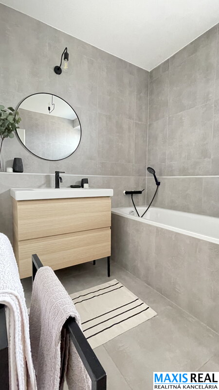 Byt je pekne vkusne zariadený , má podlahové kúrenie, el. ovládané vonkajšie hliníkové žalúzie, v kúpeľni je vaňa, WC je samostatné.